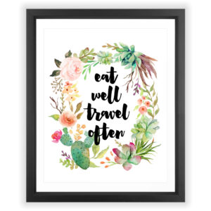 Eleville 8X10 Eat well travel often Floral Contemporary Watercolor Art Print Eleville 8X10 Eat well travel often Floral Contemporary Watercolor Art Print