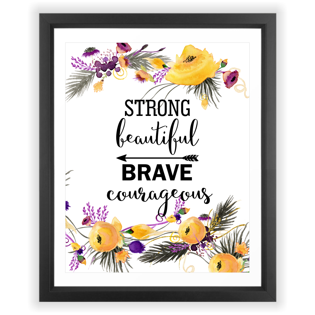 Eleville 8X10 Strong beautiful brave courageous Floral Contemporary Watercolor Art Print Eleville 8X10 Strong beautiful brave courageous Floral Contemporary Watercolor Art Print