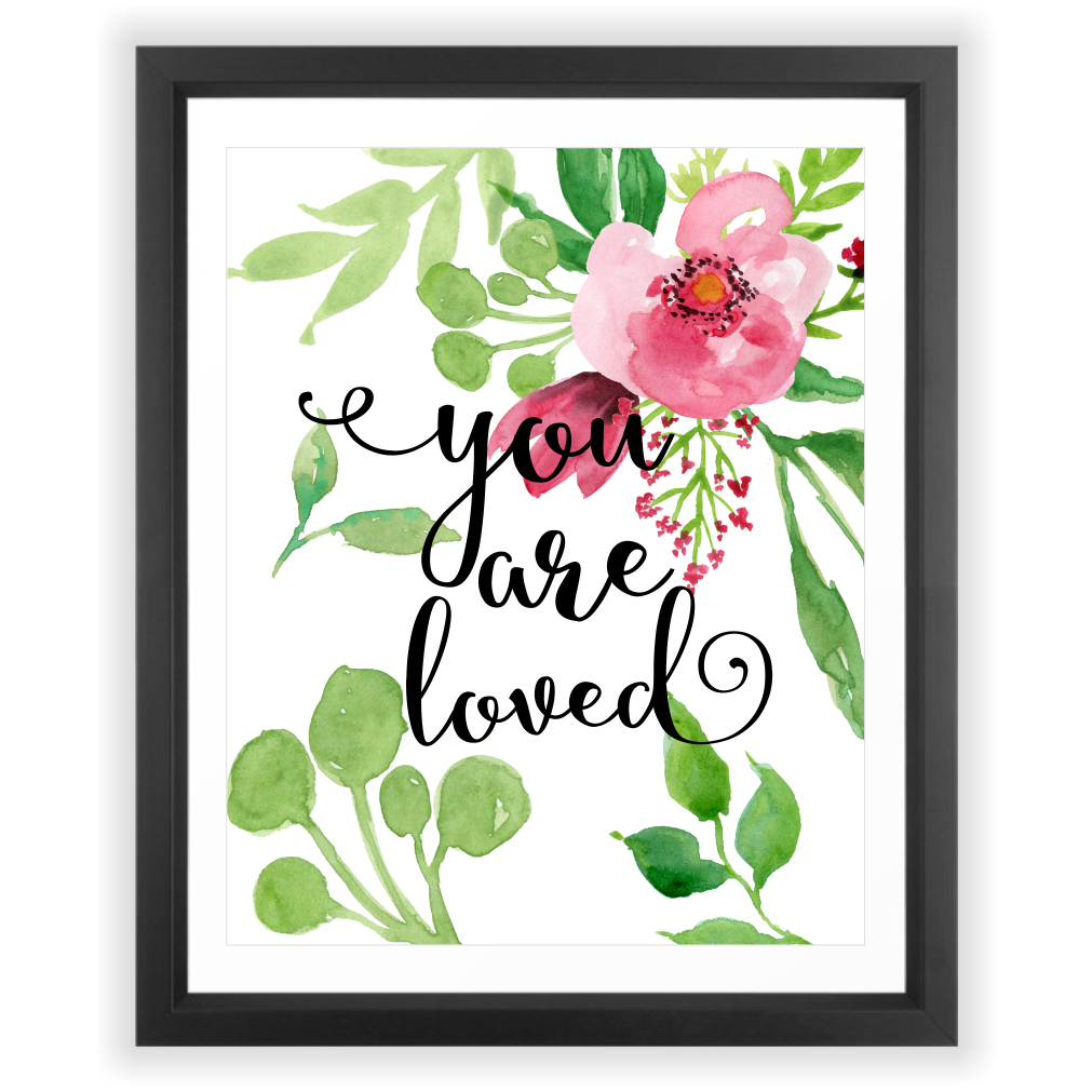 Eleville 8X10 You are loved Floral Contemporary Watercolor Art Print Eleville 8X10 You are loved Floral Contemporary Watercolor Art Print