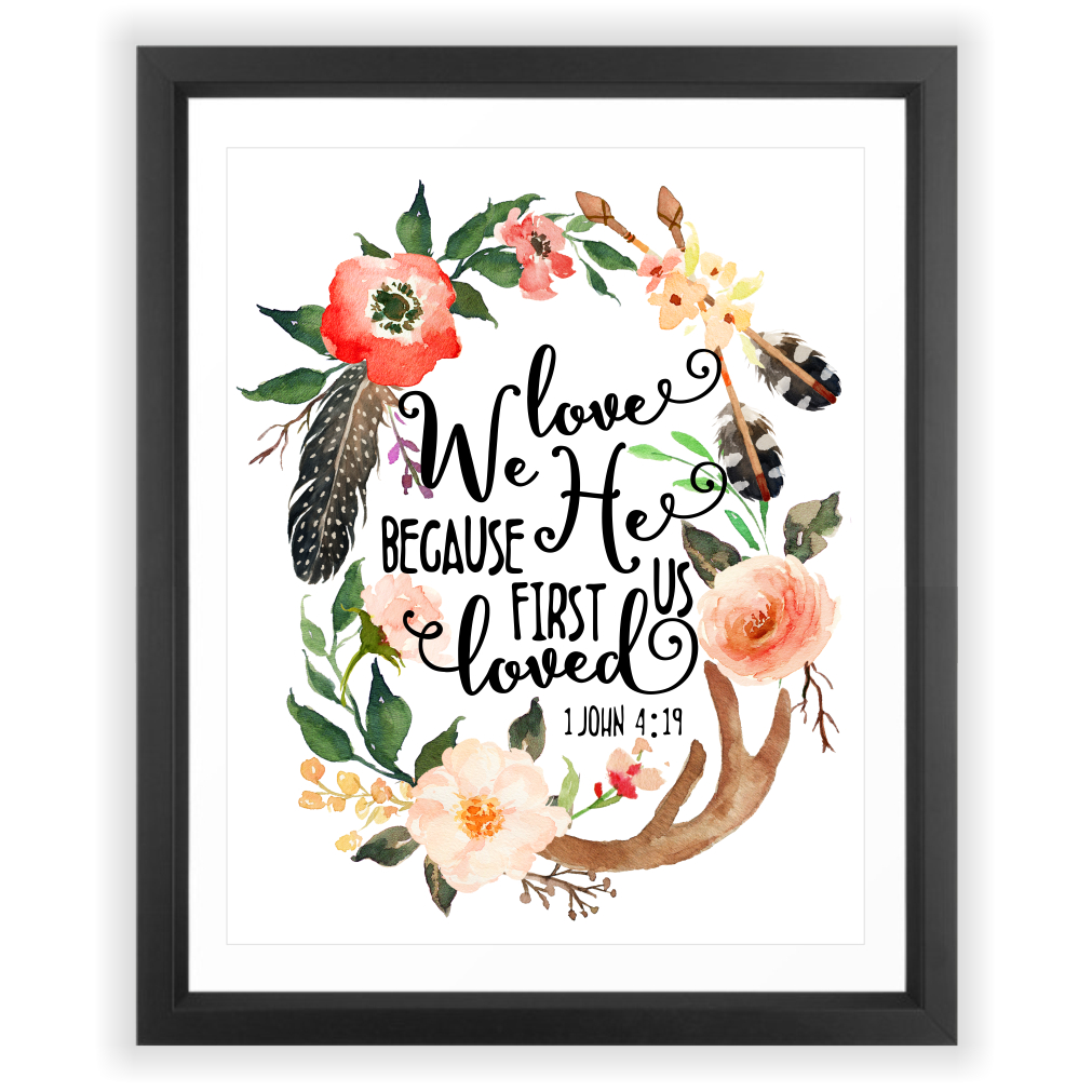 Eleville 8X10 We love because he first loved us Floral Contemporary Watercolor Art Print Eleville 8X10 We love because he first loved us Floral Contemporary Watercolor Art Print