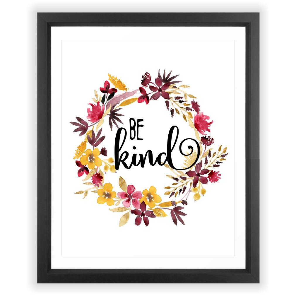 Eleville 8X10 Be kind Floral Contemporary Watercolor Art Print Eleville 8X10 Be kind Floral Contemporary Watercolor Art Print