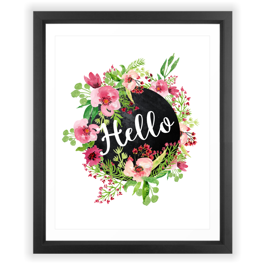 Eleville 8X10 Hello Floral Contemporary Watercolor Art Print Eleville 8X10 Hello Floral Contemporary Watercolor Art Print