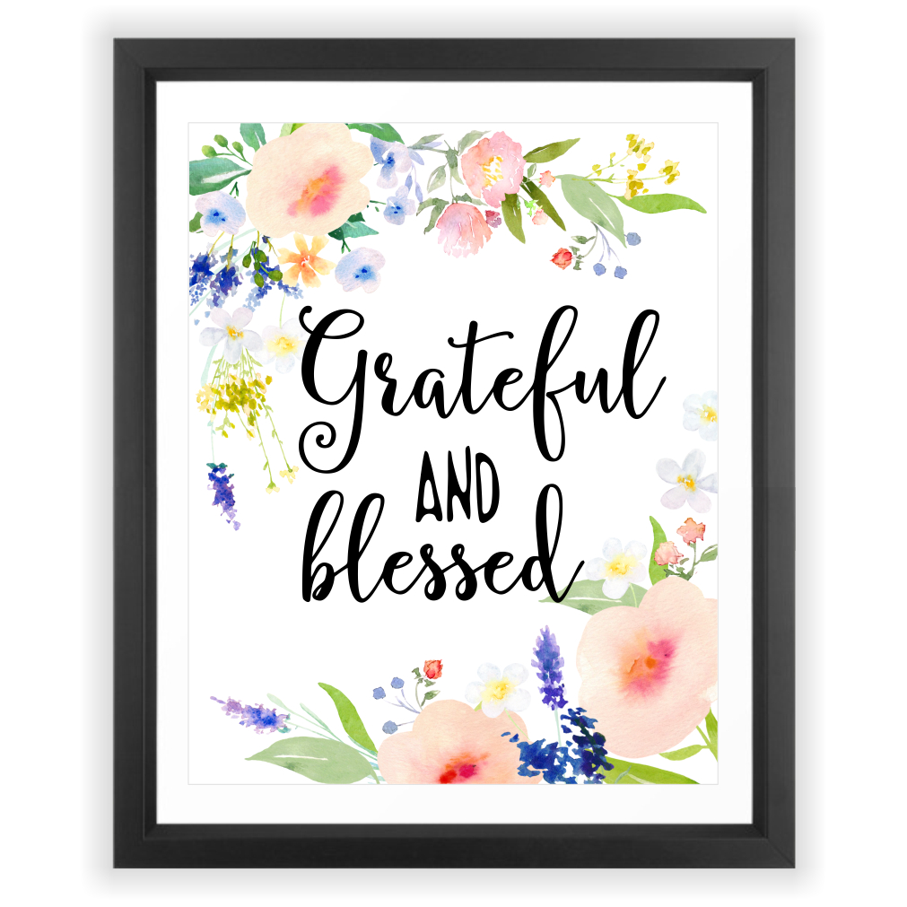 Eleville 8X10 Grateful and blessed Floral Contemporary Watercolor Art Print Eleville 8X10 Grateful and blessed Floral Contemporary Watercolor Art Print