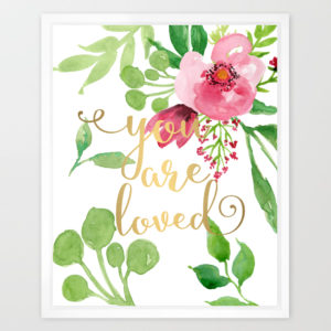 Eleville 8X10 You are loved Real Gold Foil and Floral Contemporary Watercolor Art Print