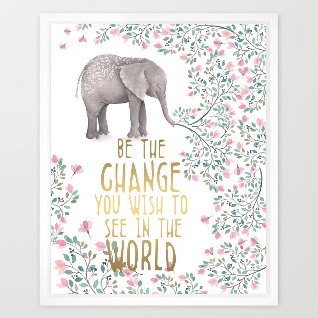 Eleville 8X10 Be the change you wish to see in the world Real Gold Foil and Floral Contemporary Watercolor Art Print