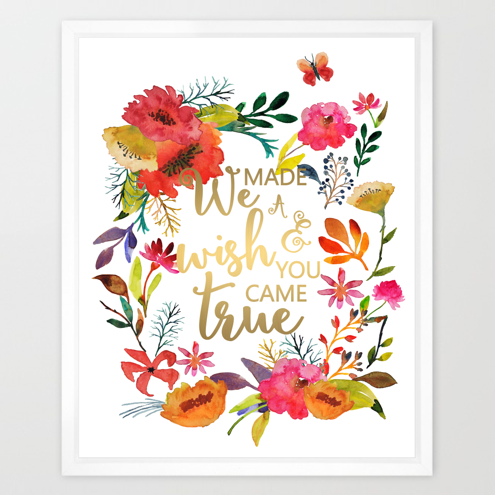 Eleville 8X10 We made a wish and you came true Real Gold Foil and Floral Contemporary Watercolor Art Print