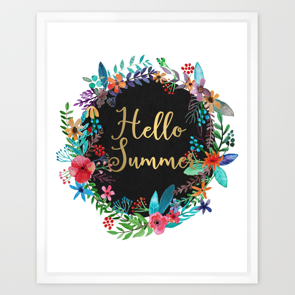Eleville 8X10 Hello Summer Real Gold Foil and Floral Contemporary Watercolor Art Print