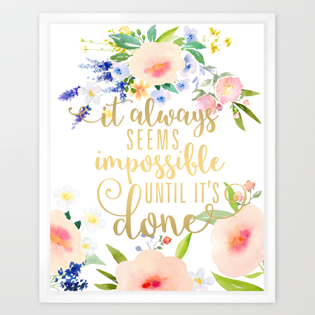 Eleville 8X10 It always seems impossible until it’s done Real Gold Foil Contemporary Watercolor Art Print